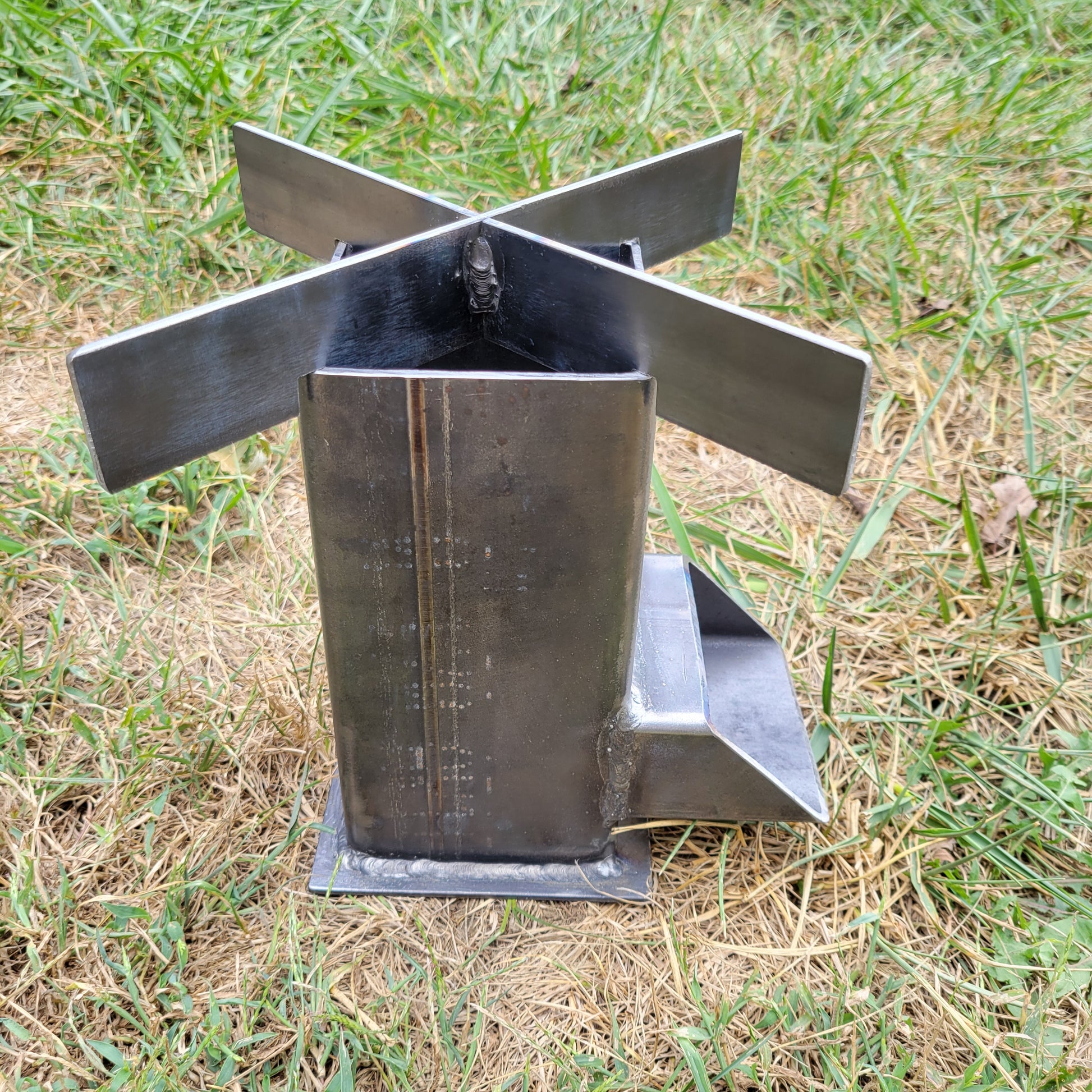 The Beacon is a powerful 4" Rocket Stove in a compact and durable package. It features a traditional fuel feed with a welded grate for ash separation. A 4" wide air inlet allows exceptional airflow throughout the burn chamber.